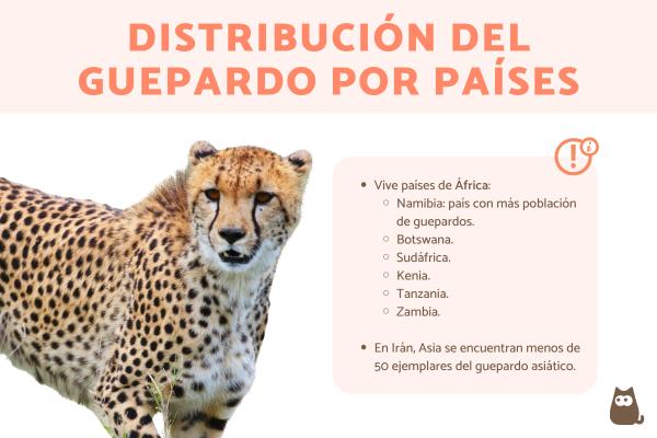 Namibia es considerado el país con la mayor población de guepardos en estado salvaje, ya que alberga aproximadamente un tercio de la población mundial. En Asia, el guepardo asiático se limita a áreas desérticas y montañosas de Irán, donde se estima que quedan menos de 50 individuos.
